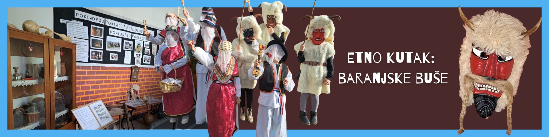 Etno kutak u našoj školi: Baranjske buše – čuvari pokladne tradicije (izložba)