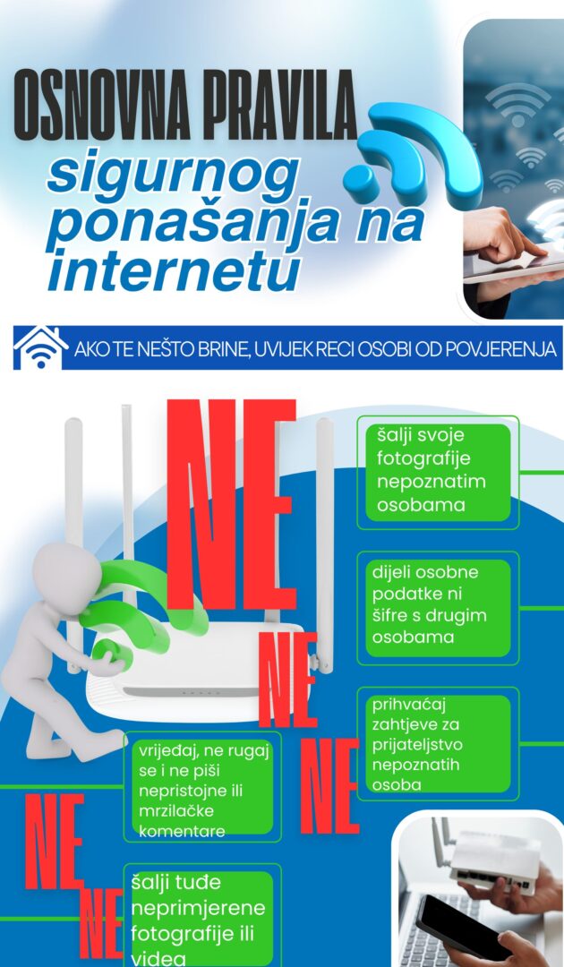 Naša škola kontinuirano provodi preventivne, edukativne i informativne aktivnosti s ciljem suzbijanja navedenih oblika ugrožavanja djece u digitalnom prostoru, ali i osvješćivanja cjelokupne javnosti o rizicima i opasnostima kojima su djeca potencijalno izložena na internetu i društvenim platformama.