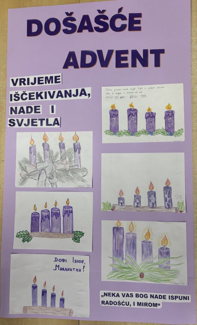 Došašće je vrijeme pripreme za Božić. Učenici na satu katoličkoga vjeronauka bili su vrlo kreativni te su svojim crtežima dočarali simboliku Došašća, koje traje četiri nedjelje. Naučili su kako se i mi trebamo pripremati u vremenu Došašća: dobrim djelima, lijepim ponašanjem, pomaganjem slabijima, opraštanjem uvreda, marljivijim učenjem, slušanjem i darivanjem siromašnima.