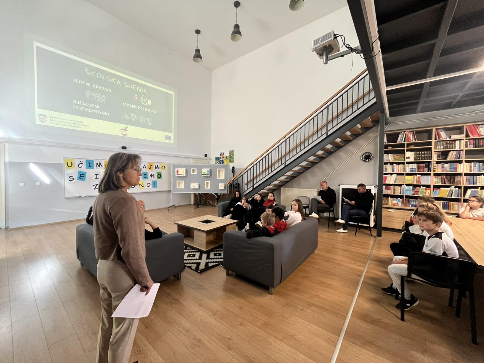 U sklopu pratećih obrazovnih mjera – usluga organizacija satova kušanja voća i povrća i/ili mlijeka i mliječnih proizvoda te usluga edukacije učeničke populacije u okviru EU programa Školska shema Dmd naturalis proveo je 2. 10. 2025. edukaciju učenika 5. razreda