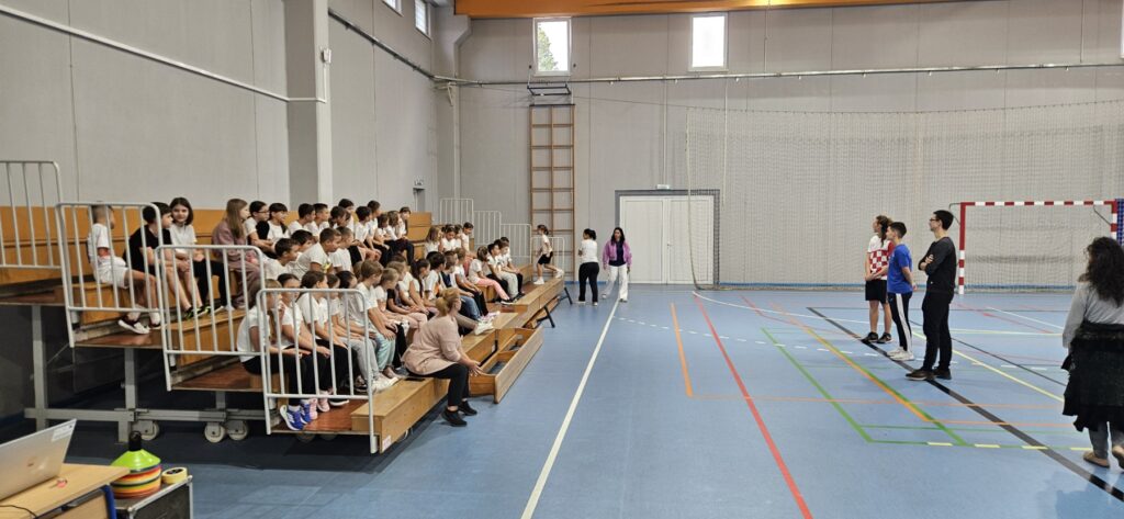 Svi su učenici dobili priliku sudjelovati u razgibavanju pod stručnim vodstvo studentice kineziologije, Gabrijele Martinović, koja je vodila raznolik i program prilagođen interesima učenika – istezanje, trčanje, vježbe i sportske igre. Osim nje, ostvarili smo suradnju i sa članovima Dodgeball Mursa. Učenici su razvijali brzinu, spretnost i timski duh, a kroz taj zanimljiv sport uživali u zabavi. Dinamična igra dijelom podsjeća na popularni graničar – cilj je izbaciti protivnika pogodcima lopte. Ipak, dodgeball se igra s pet lopti, što igri daje poseban ritam i omogućuje zanimljive taktičke situacije. Na taj su način svi učenici doživjeli sport kao veselje, odmor i zajedništvo.