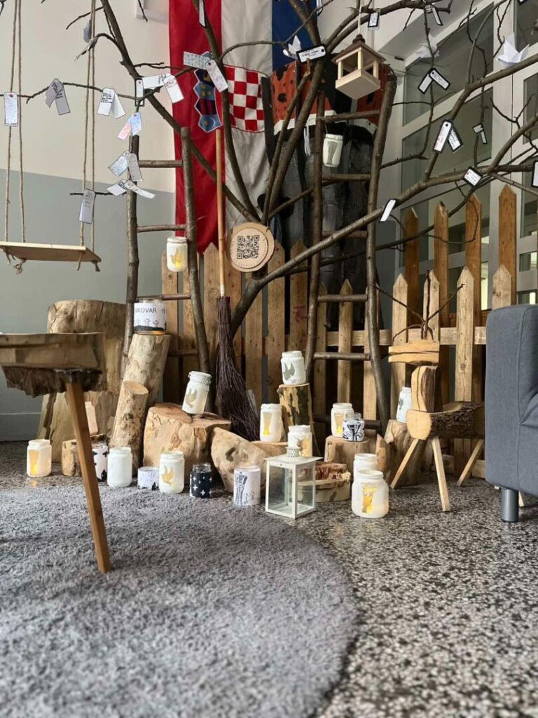 Učenici razredne nastave na satu likovne kulture oslikavali su staklenke, dok su učenici predmetne nastavnice s učiteljicom s motivima vjere u budućnost i pomirenje. Bijela boja kojom je oslikavana te snažni motivi su nas podsjetili na nevinost i neiskvarenost koju ne smijemo izgubiti u sebi i kojoj trebamo težiti.