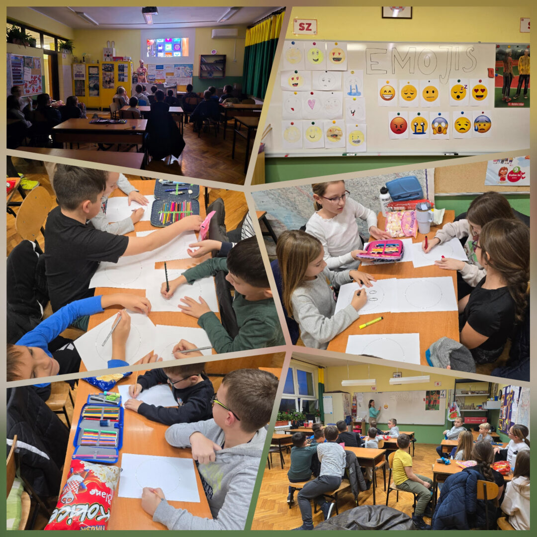 Učenici razredne nastave Područne škole Grabovac, od 1. do 4. razreda, sudjelovali su u zajedničkoj radionici informatike i engleskog jezika uz „Emoji film“. Na početku smo razgovarali o osnovnim emocijama te na hrvatskom i engleskom jeziku imenovali emojije poput happy, sad, angry i tired. Učenici su zatim izradili vlastiti emoji na papiru.