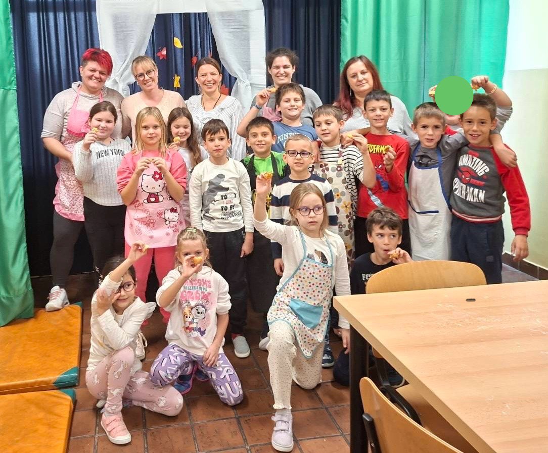 Povodom Dana kruha i zahvalnosti za plodove zemlje, učenici su uz pomoć dviju mama vrijedno mijesili pitu od sira i male pogačice. Uz veselje i miris svježe pečenog tijesta, djeca su uživala u zajedničkom radu, a nakon toga s guštom i kušala svoje ukusne zalogaje.