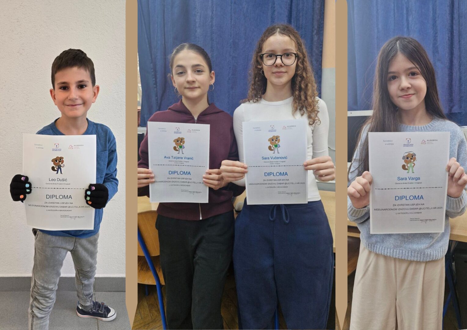Naši su se učenici i ove godine svrstali među 10% najboljih u rješavanju zadataka računalnog razmišljanja. Čestitamo učenicima koji su za ovu prigodu dobili posebnu zlatnu diplomu!
